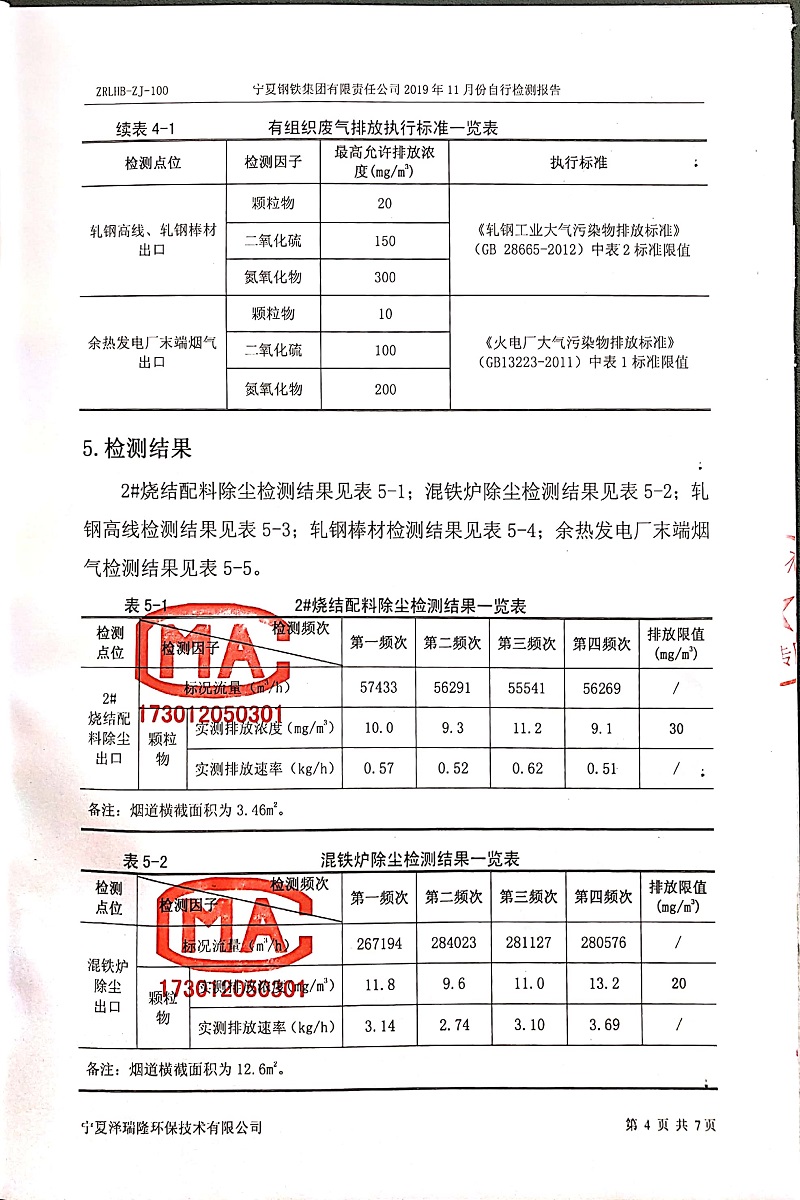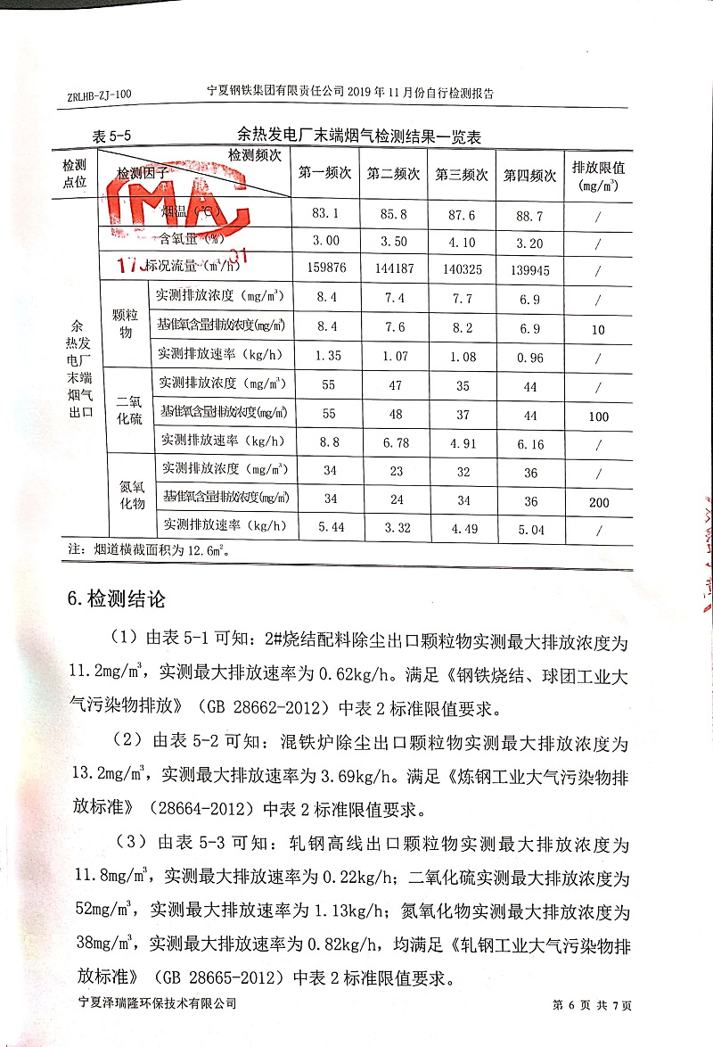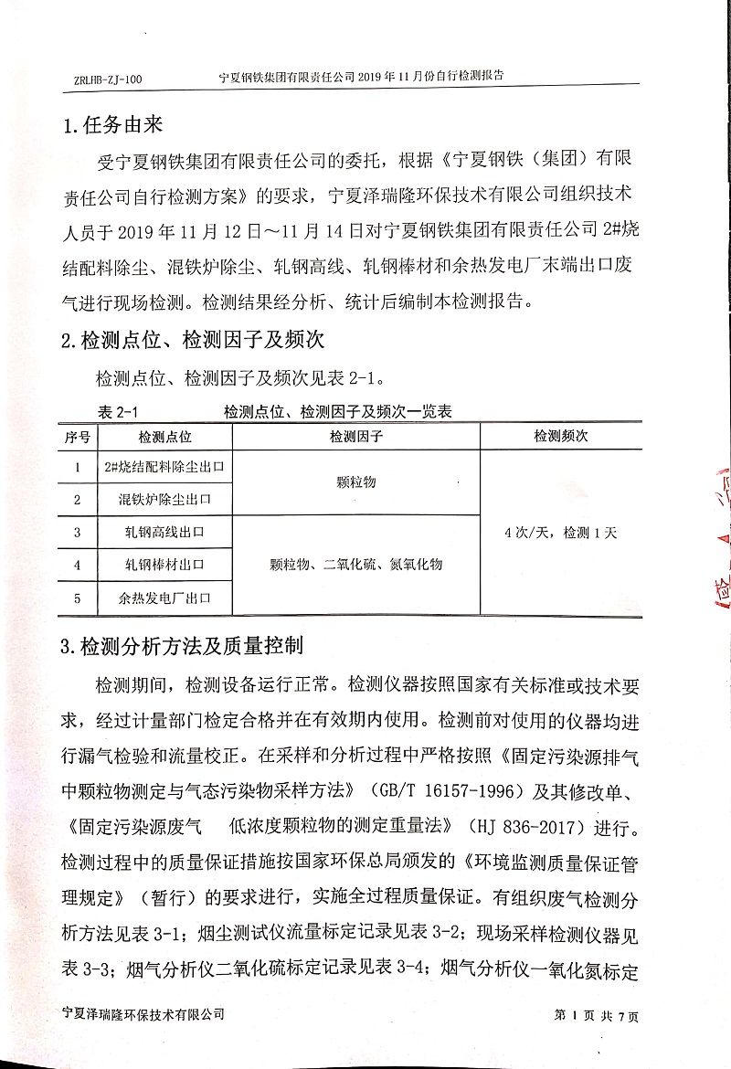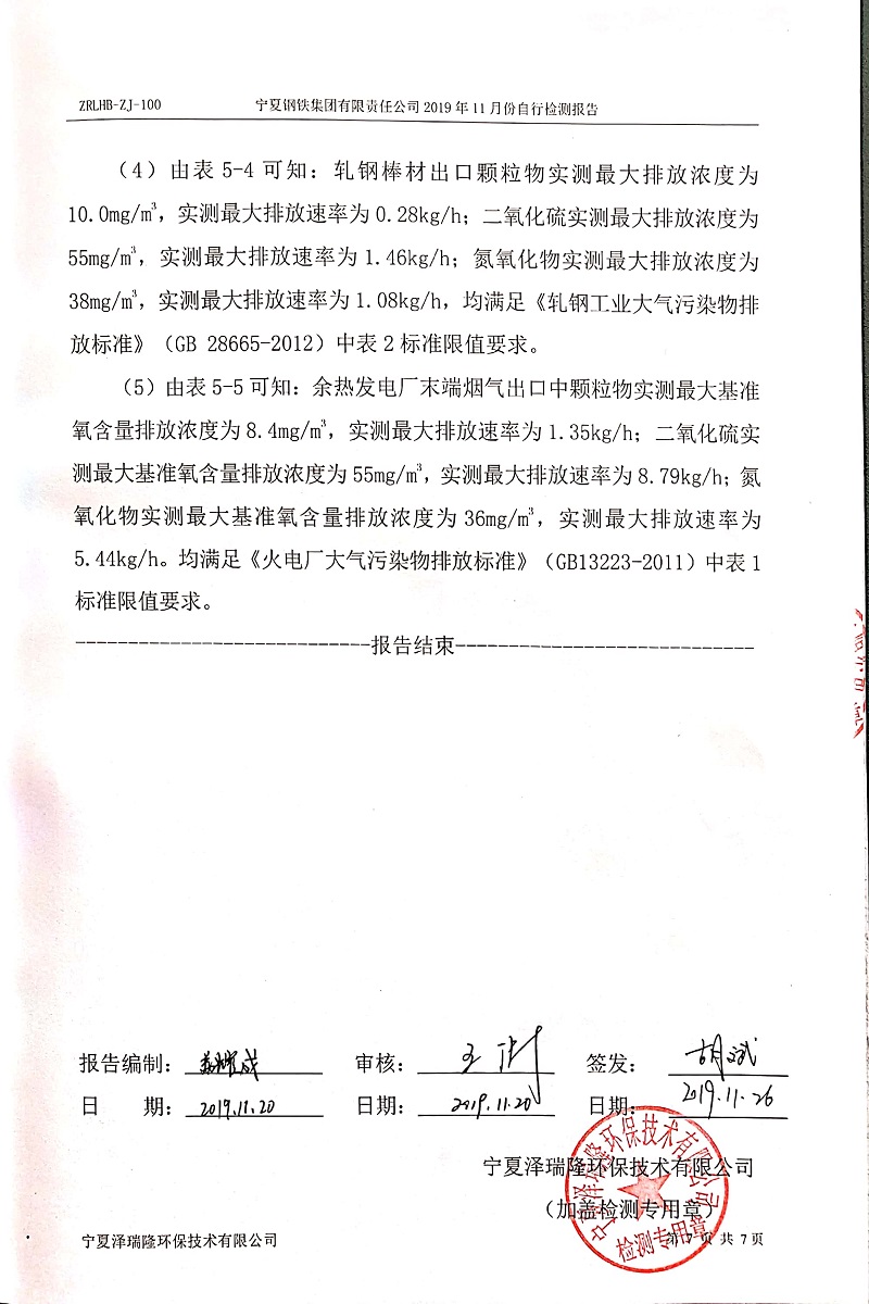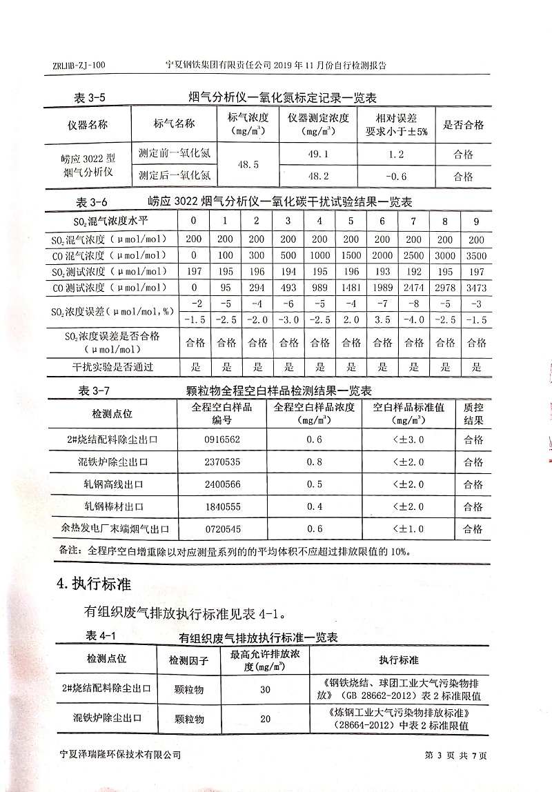 寧鋼2019年11月份自行檢測報(bào)告