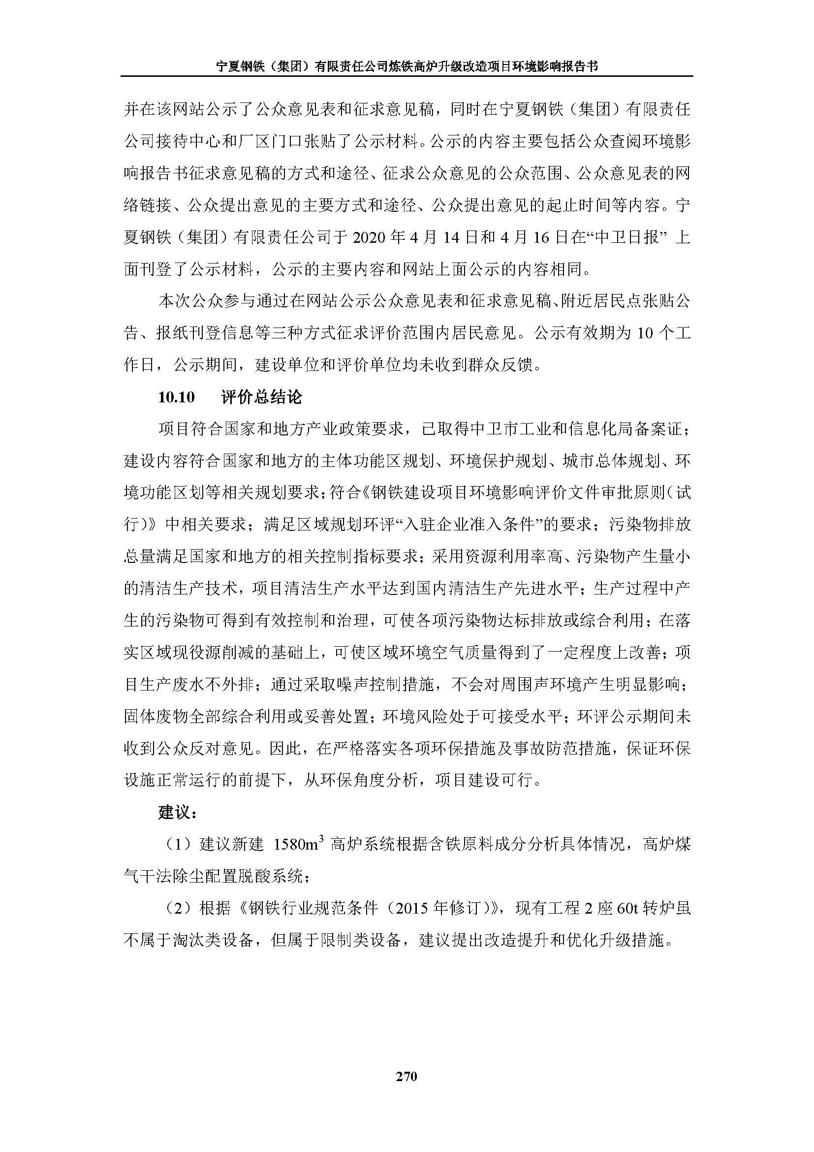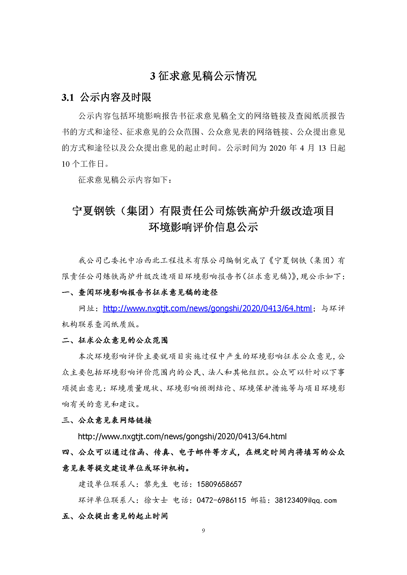寧夏鋼鐵(集團(tuán))有限責(zé)任公司煉鐵高爐升級(jí)改造項(xiàng)目環(huán)境影響評(píng)價(jià)報(bào)批公示