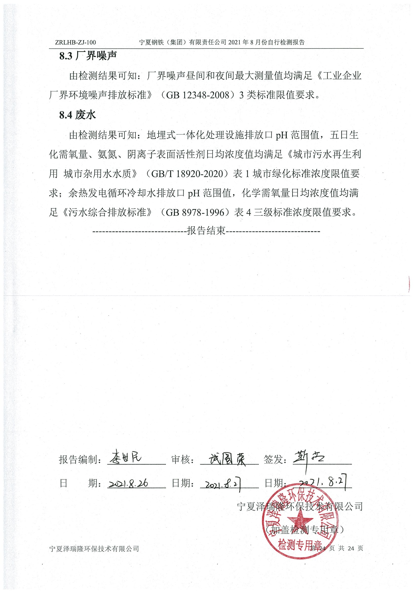 2021年8月份檢測報告