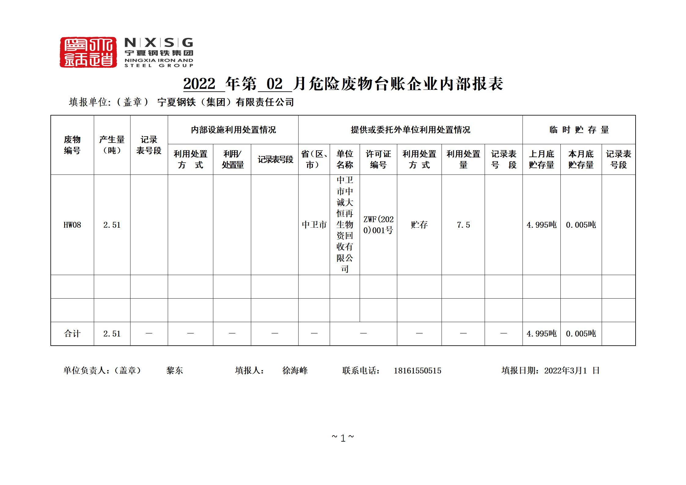 2022年危險(xiǎn)廢物管理臺(tái)賬